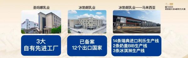 目前,圣嗎哪有三大自有工廠:一個(gè)是圣嗎哪乳業(yè),一個(gè)是冰勃朗乳業(yè),另一個(gè)是馬來西亞工廠,覆蓋中國(guó)與東南亞市場(chǎng),構(gòu)建全球乳品供應(yīng)鏈。同時(shí)配備了10條液態(tài)乳生產(chǎn)線和3條冰淇淋線,具備大批量、高品質(zhì)的輸出能力。