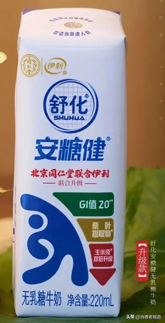 從宣傳資料可以看到,舒化安糖健無乳糖牛奶(升級(jí)款)是伊利與北京同仁堂聯(lián)名研發(fā)的新品,以桑葉提取物、玉米須等為原料,并獲得了低血糖生成指數(shù)(GI)食品認(rèn)證。