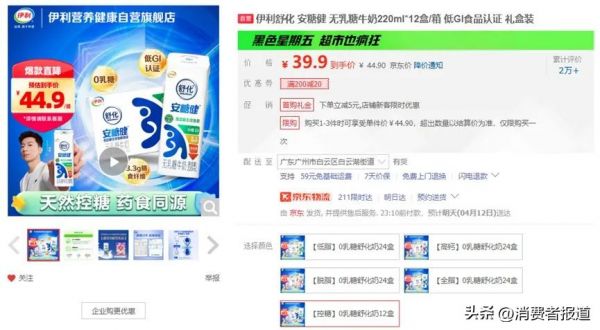 不過,《消費(fèi)者報(bào)道》記者并未在伊利天貓旗艦店內(nèi)找到該款產(chǎn)品,在京東平臺(tái)上,有一家名為“伊利營養(yǎng)健康京東自營旗艦店”的店鋪在售舒化安糖健無乳糖牛奶,售價(jià)為39.9元/箱,規(guī)格為220ml*12盒。