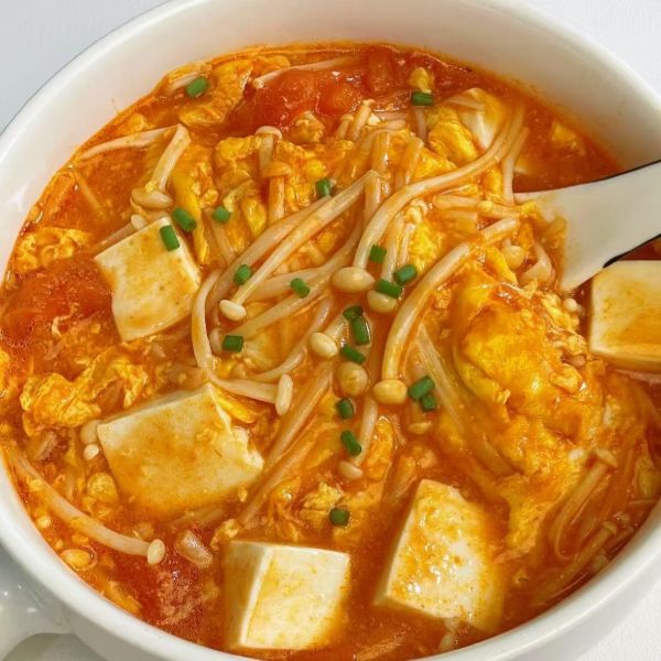 將豆腐融入湯品,酸甜的番茄湯底,搭配爽滑的金針菇和嫩豆腐,一碗下肚,從胃暖到心。這道湯品熱量低,富含膳食纖維,潤燥生津,特別適合干燥的秋冬季節(jié)。