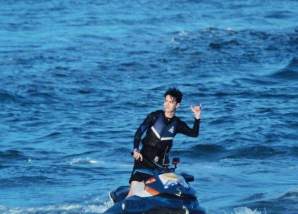 但是看到一博在海上玩得那么開心,在海面騎摩托艇真的太有型了,又帥又颯!