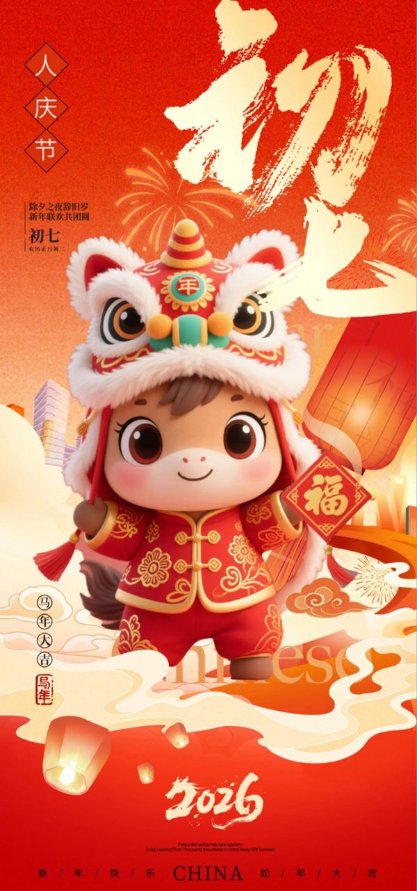 1. 2026馬年大年初七,人日到啦!過去一年你展現(xiàn)自我超自信,像駿馬在人生舞臺上閃耀光芒。新的一年愿你繼續(xù)綻放光彩,實現(xiàn)更多人生價值,初七開啟新一周,工作順利,快樂常伴!