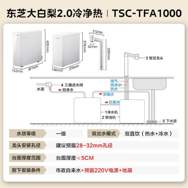 2. 東芝凈水器套裝【大白梨TFA1000+壁掛管線機(jī)TG-02】