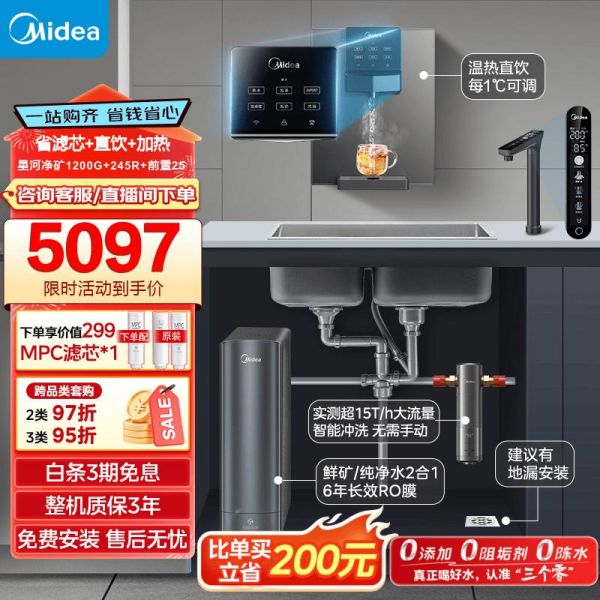 5. 美的省芯直飲加熱凈水器套裝【星河2.0凈礦1200G+管線機(jī)245R+前置-25pro】