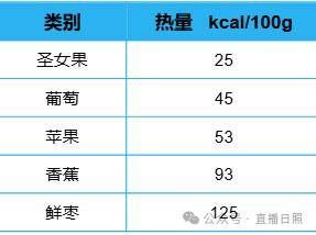 對比一下,常見的水果每100g所含的熱量,葡萄是45千卡,蘋果是53千卡,香蕉93千卡,鮮棗高達125千卡。這差距,一目了然。
