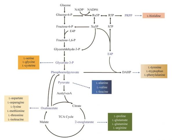 馬倩, 夏利, 譚淼, 孫全偉, 楊蒙雅, 張穎, 陳寧. 氨基酸生產(chǎn)的代謝工程研究進(jìn)展與發(fā)展趨勢. 生物工程學(xué)報, 2021, 37(5): 1677-1696.