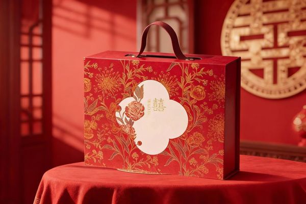 大紅色的禮盒上印有金色“囍”字,洋溢著濃濃的中國(guó)年味。無(wú)論是作為結(jié)婚回禮、訂婚伴手禮,還是單純的年節(jié)禮物,都能傳遞出喜慶吉祥的美好寓意。