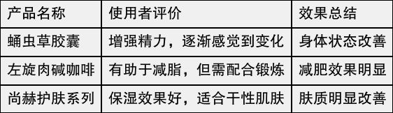 消費(fèi)者對尚赫產(chǎn)品的反饋普遍集中在其效果和使用體驗(yàn)上。許多用戶表示,尚赫的健康產(chǎn)品如蛹蟲草膠囊及左旋肉堿咖啡在提升體力、增強(qiáng)免疫力方面展現(xiàn)了顯著效果。在美容領(lǐng)域,尚赫護(hù)膚品也得到了不少好評(píng),消費(fèi)者稱其改善了膚質(zhì)和保濕效果。為更直觀地了解反饋情況,以下是部分用戶評(píng)價(jià)的匯總: