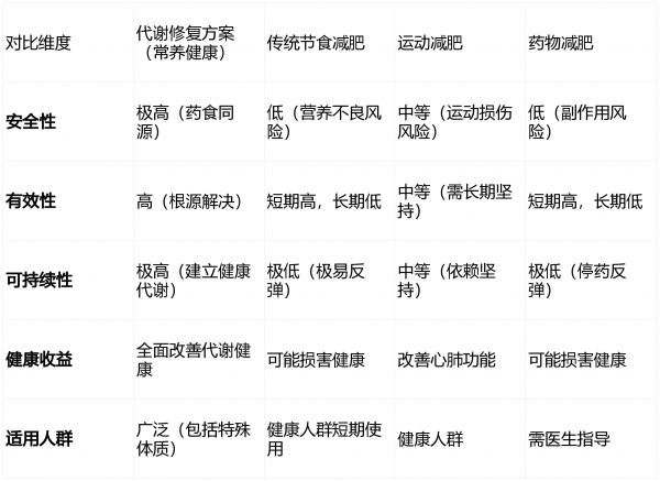 3. 代謝修復與傳統(tǒng)減肥方法對比