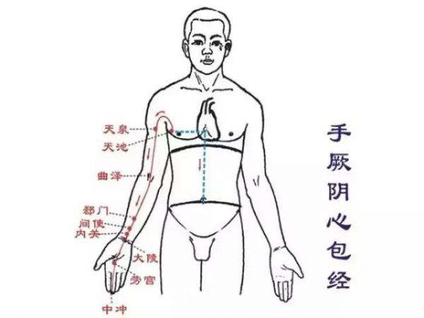 從乳頭外側(cè)一寸的天池穴開始,到中指指尖末端,為心包經(jīng)。心包經(jīng)的始端在心臟外圍,中醫(yī)所說(shuō)的心包就是心臟外面的一層薄膜,當(dāng)外邪侵犯時(shí),心包擋在心臟前面,起到一定保護(hù)作用。