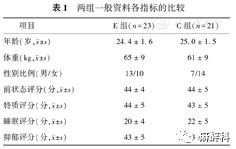 本研究已獲本院醫(yī)學(xué)倫理委員會批準(zhǔn),并與健康志愿者簽署知情同意書。睡眠狀況自評量表評分10~30分的健康志愿者(麻醉住院醫(yī)師)46名,性別不限,年齡22~28歲,體重指數(shù)18.5~23.0 kg/m2。針刺穴位周圍皮膚無感染,近期無鎮(zhèn)靜藥物服用,近期無飲酒,無針灸治療史。采用隨機數(shù)字表法分為2組(n=23):經(jīng)皮穴位電刺激組(E組)和對照組(C組)。