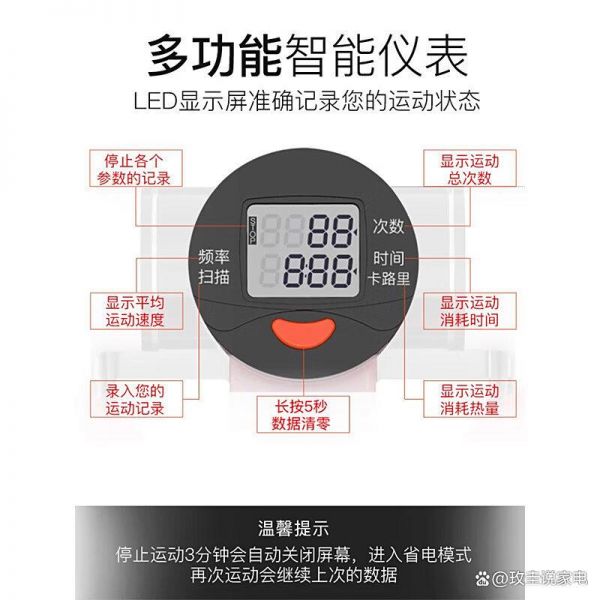 何佳功智能踏步機配備了一塊多功能LED顯示屏,能夠清晰記錄并顯示運動時間、次數(shù)、卡路里消耗等多項數(shù)據(jù)。用戶可以通過屏幕實時了解自己的訓練狀態(tài),幫助更好地掌控鍛煉節(jié)奏。顯示屏還支持數(shù)據(jù)清零功能,方便記錄每日訓練成果。