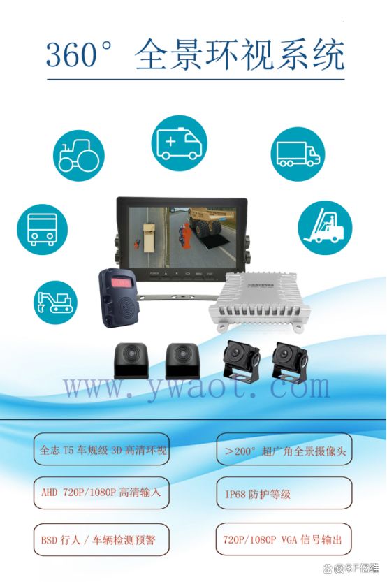 億維智聯(lián)研發(fā)了360全景影像系統(tǒng)來消除工程機(jī)械車輛周圍的盲區(qū)。該系統(tǒng)通過加裝在車輛前后左右的4個(gè)高清夜視廣角攝像頭,采集車身四周的高清實(shí)時(shí)畫面,通過AI視覺拼接技術(shù)處理,形成車輛周邊全景視圖,實(shí)時(shí)顯示在駕駛員眼前,同時(shí)系統(tǒng)具有4路BSD功能,能實(shí)時(shí)監(jiān)測車身四周盲區(qū)內(nèi)的行人、非機(jī)動(dòng)車輛和障礙物,實(shí)施分級(jí)預(yù)警。通過車內(nèi)屏幕與車外聲光報(bào)警器同時(shí)提醒司機(jī)和車輛周邊的作業(yè)人員、減少人車傷亡事故,作業(yè)更安全高效。