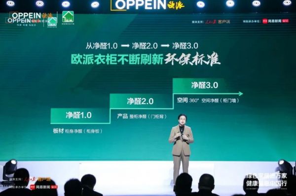 本次發(fā)布會(huì)現(xiàn)場(chǎng),備受業(yè)界矚目的凈醛衣柜3.0重磅首發(fā)。歐派凈醛衣柜3.0并非簡(jiǎn)單的技術(shù)升級(jí)和產(chǎn)品升級(jí),而是聚焦用戶消費(fèi)者整家環(huán)保需求的一次解決方案升級(jí)。