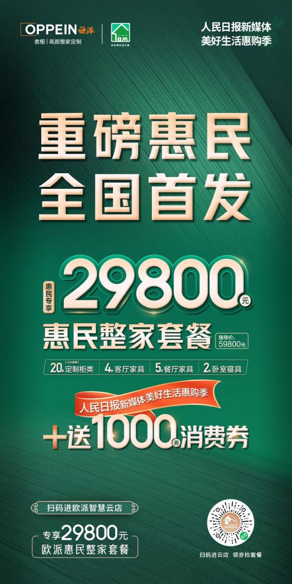 新年伊始,歐派攜手人民日?qǐng)?bào)新媒體,重磅開啟《美好生活惠購季》。面向全國(guó)消費(fèi)者派發(fā)“1億專屬大額消費(fèi)券”,每個(gè)家庭可領(lǐng)1000元。為了讓更多的消費(fèi)者享受這種福利,為了讓健康普惠走進(jìn)千家萬戶,原本定于1月29日截止的派券活動(dòng),歐派決定將其延續(xù)至3.15活動(dòng)結(jié)束。消費(fèi)者只需點(diǎn)擊人民日?qǐng)?bào)客戶端《美好生活惠購季》活動(dòng)專題頁或者登陸歐派智慧云店輸入手機(jī)號(hào),即可領(lǐng)取相應(yīng)的消費(fèi)券,并在歐派的線上官方旗艦店和線下實(shí)體店,無門檻享受額外的現(xiàn)金抵扣和政策優(yōu)惠。值得一提是,1000元消費(fèi)券可疊加29800歐派惠民整家套餐,在歐派全國(guó)7000多家終端無門檻使用。