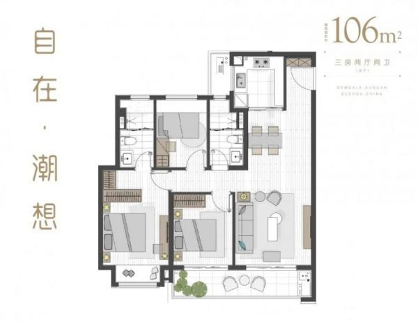 三種戶型都帶有陽臺,坐北朝南,透光不錯,同時自帶陽臺,在冬日午后或是夏日夜晚,坐在陽臺應(yīng)該是一件很愜意的事。