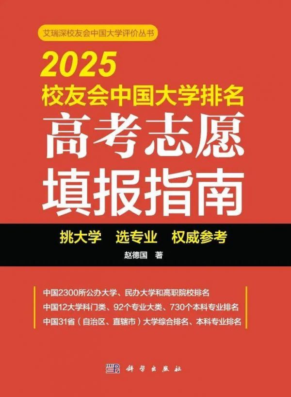 由艾瑞深研究團(tuán)隊獨家編撰的《2025校友會中國大學(xué)排名:高考志愿填報指南》一書將由科學(xué)出版社公開出版發(fā)行。
