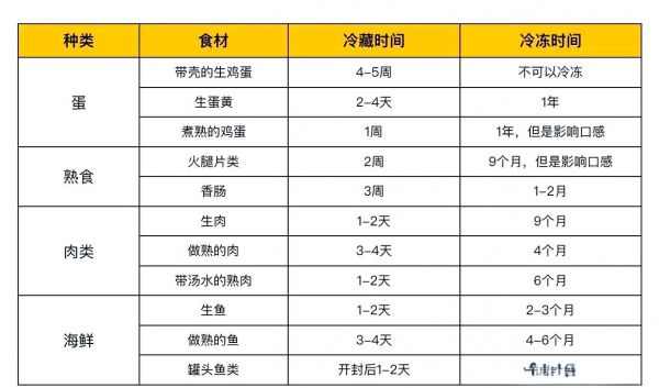 為了幫助大家更清晰地了解不同食材在冷藏和冷凍條件下的保存時(shí)間,我們特別整理了一張表格。這張表格涵蓋了諸多常見的蛋白質(zhì)類食材,詳細(xì)列出了它們?cè)诶洳睾屠鋬鍪抑械倪m宜保存時(shí)長。需要注意的是,食材的保存時(shí)間會(huì)受到其處理干凈程度的影響,因此,在準(zhǔn)備便當(dāng)時(shí),務(wù)必確保食材已經(jīng)得到妥善處理。