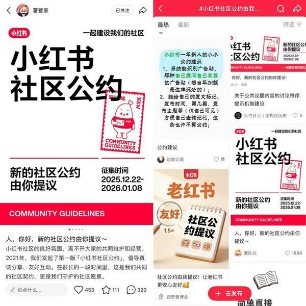 (小紅書社區(qū)提前征集用戶的反饋,發(fā)起了話題征集活動(dòng)#小紅書社區(qū)公約由我提議)