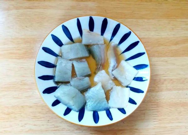 將去刺黃魚(yú)柳的魚(yú)皮朝下,細(xì)心切成適宜的大小,注意不要翻轉(zhuǎn)切,以防魚(yú)肉散開(kāi)。若在菜市購(gòu)買(mǎi),可請(qǐng)賣(mài)魚(yú)者將魚(yú)肉與魚(yú)刺分離,帶魚(yú)刺部分可用于煲湯。將切好的魚(yú)肉放入碗中,加入兩勺料酒進(jìn)行腌制,確保魚(yú)肉均勻裹上料酒,腌制過(guò)程中翻面一次,讓魚(yú)肉充分吸收料酒的香味,腌制時(shí)間約為10分鐘。魚(yú)肉切好后腌制,豆腐需瀝干水分并切塊,以確保最佳的入味效果。