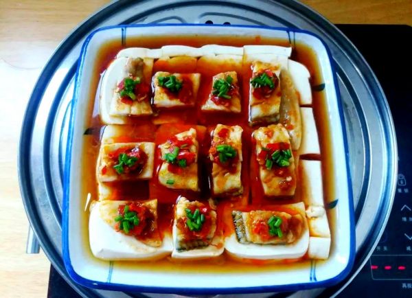 將魚(yú)肉和豆腐放入已燒開(kāi)水的鍋中,用大火蒸煮3分鐘,之后燜1分鐘。在出鍋前,撒上適量的蔥花增香,這樣,一道色香味俱佳的魚(yú)肉蒸豆腐就圓滿(mǎn)完成了。