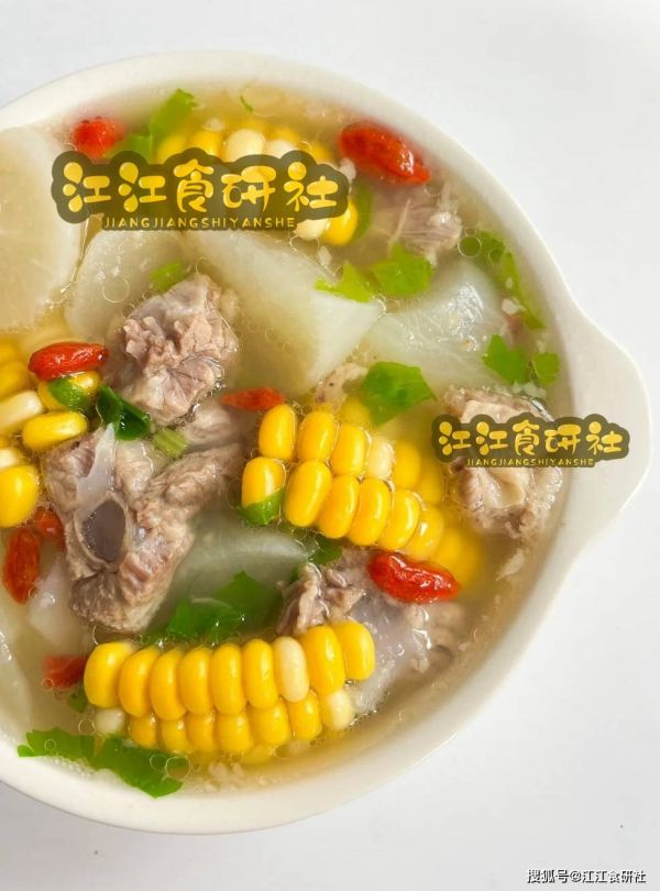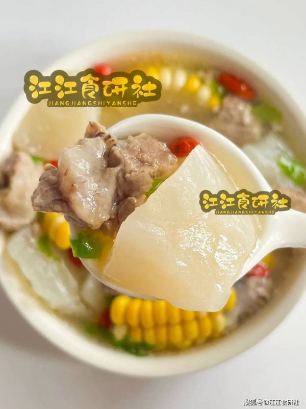 和清甜的玉米、醇厚的排骨一起燉。湯水清甜,蘿卜軟糯,排骨酥爛。