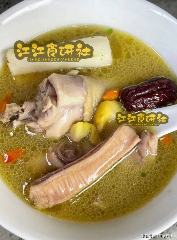 看,湯色是濃郁的金黃,表面飄著點(diǎn)點(diǎn)油花。