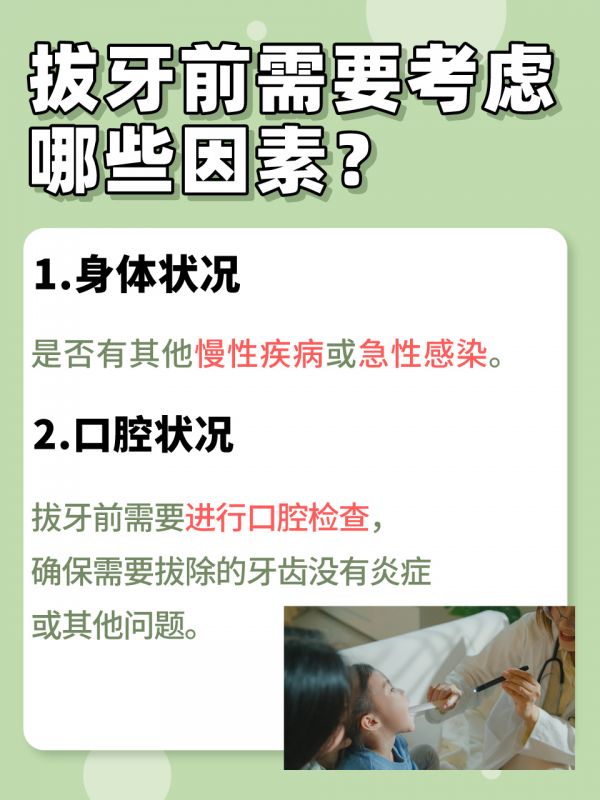 2.口腔狀況:拔牙前需要進行口腔檢查,確保需要拔除的牙齒沒有炎癥或其他問題。