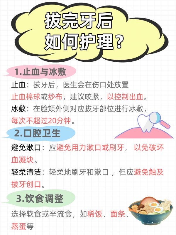 輕柔清潔:24小時后,可以開始輕柔地刷牙和漱口,但應(yīng)避免觸及拔牙創(chuàng)口。