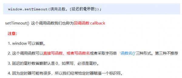 <script> // 回調函數(shù)是一個匿名函數(shù) setTimeout(function() { console.log('時間到了'); }, 2000); function callback() { console.log('爆炸了'); }// 回調函數(shù)是一個有名函數(shù) var timer1 = setTimeout(callback, 3000); var timer2 = setTimeout(callback, 5000); </script> 2、案例:5秒后關閉廣告