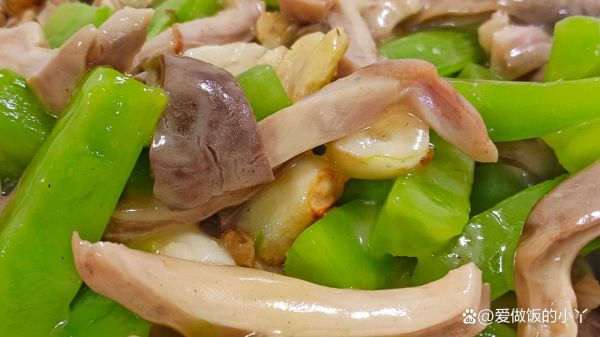 3、起鍋燒油,油熱后加入姜蒜炒香,再倒入豬肚翻炒后下入萵筍條翻炒,然后加入清水,調入鹽、胡椒粉燒十多分鐘后加入雞精,倒入水淀粉大火收汁出鍋即可。
