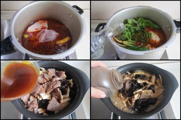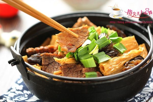 制作過程: 燒熱鍋放入少許油,將姜蔥段放進(jìn)鍋中煸炒香,加入郫縣豆瓣醬煸炒出紅油, 加入適量的水,將牛肉放入鍋中大火煮開,撇去浮沫, 再放入2根香菜, 倒入少許高度白酒和醬油, 再加蓋后燉煮40分鐘將其燉煮熟, 加入適量的鹽, 將鹵好的牛肉放在里面浸泡一上午或者一個晚上。 將燉煮好的牛肉切成片,再將其牛肉、泡軟的腐竹和黑木耳放在小鍋中, 加入適量的湯汁燉煮五分鐘, 最后加入少許鹽和胡椒粉調(diào)味,放入少許蔥花即可。
