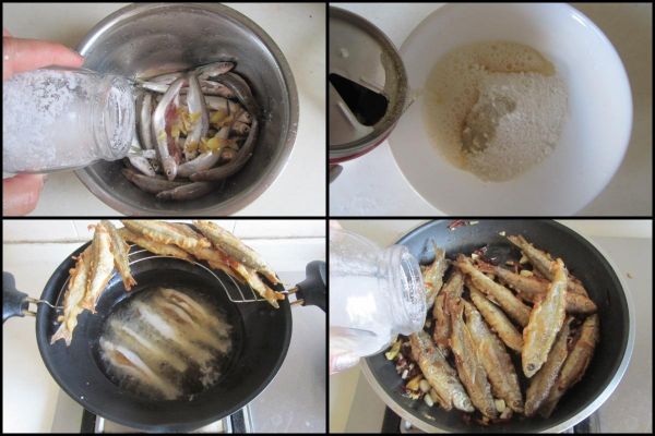 制作過程: 將小魚出來干凈后加入少許鹽、料酒和姜末等拌均勻腌制五分鐘備用。 淀粉加入少許鹽,再加入適量的啤酒,將它合成稀稠合適的面糊。 燒熱鍋放入適量的油,將油溫六、七成熟時,將腌制好的小魚放入面糊中滾動一下,讓小魚的表面均勻地裹上一層面糊,將小魚放進(jìn)油鍋中炸熟。 鍋中少許油,加入少許蒜末、花椒粒和干辣椒粒放進(jìn)鍋中去煸炒, 最后加入少許鹽調(diào)味翻炒均勻即可。
