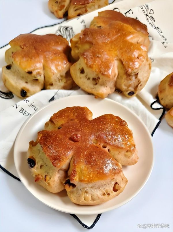 10. 烘烤全麥核桃包:在烤箱預(yù)熱至180°C時(shí),刷上薄薄一層黃油,放入烤箱中,烤15-20分鐘,直到面包表面呈金黃色,外脆內(nèi)軟。
