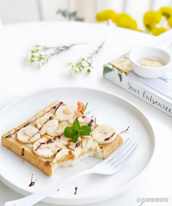 3. 切香蕉:在吐司烤的同時(shí),將香蕉去皮,切成薄片備用。香蕉切片要均勻,方便鋪在吐司上。
