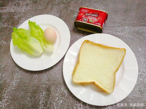 (一) 準(zhǔn)備食材:吐司2片,雞蛋1個,雨潤午餐肉2-3片,生菜適量,沙拉醬適量,食用油油或黃油適量。