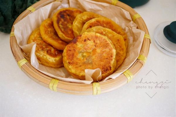 7、平底鍋燒熱加少許植物油,放入小餅烙熟即可。