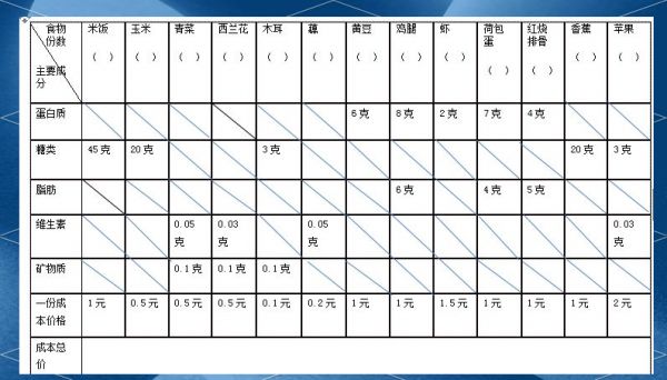 在營養(yǎng)快餐的搭配中,我們不僅關(guān)注了食材的營養(yǎng)成分,還深入探討了各種食材的脂肪、糖類、維生素和礦物質(zhì)含量。通過科學(xué)的配比,我們力求在滿足營養(yǎng)需求的同時(shí),也控制了成本,確保這份營養(yǎng)快餐既美味又經(jīng)濟(jì)實(shí)惠。