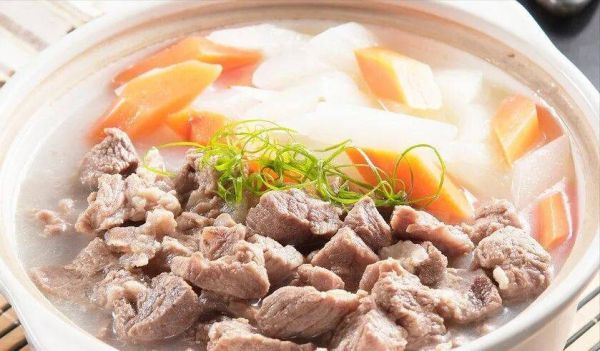 白蘿卜切成滾刀塊,羊肉切塊后,倒在鍋里,來上料酒和生姜,進行焯燙,焯水之后撈出來洗凈。重新準(zhǔn)備一口鍋,把羊肉倒進去,放姜片和清水,燉上1個小時之后,把白蘿卜倒下去,繼續(xù)燉15分鐘,白蘿卜軟爛之后,加鹽、白胡椒粉調(diào)味,盛出來撒上香菜段,開喝。