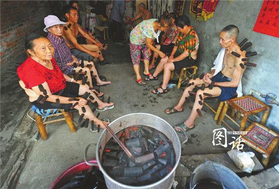 滾燙藥水中手取竹筒