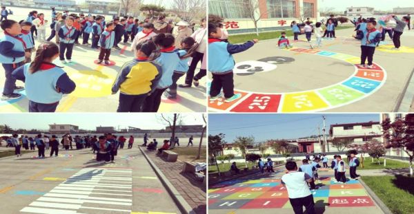 校園里還設(shè)置了別具一格的“地面游戲樂(lè)園”。這個(gè)區(qū)域用色彩斑斕的方格、圓圈和數(shù)字圖案進(jìn)行了精心裝飾,不僅為孩子們提供了跳房子、趣味迷宮和團(tuán)隊(duì)協(xié)作方格等傳統(tǒng)游戲的全新體驗(yàn),還激發(fā)了他們的創(chuàng)新熱情。一下課,學(xué)生們便爭(zhēng)先恐后地奔向這個(gè)樂(lè)園,盡情享受游戲的樂(lè)趣。其中,一些學(xué)生巧妙地將學(xué)科知識(shí)融入游戲中,如“古詩(shī)接龍?zhí)褡印焙汀八阈g(shù)闖關(guān)”等玩法,不僅增加了游戲的趣味性,還讓學(xué)生在輕松愉快的氛圍中學(xué)習(xí)了新知識(shí)。如今,“地面游戲樂(lè)園”已成為苑莊學(xué)?!半p減”政策下減負(fù)增效的典范,真正實(shí)現(xiàn)了“玩中學(xué)、動(dòng)中長(zhǎng)”的教育理念。