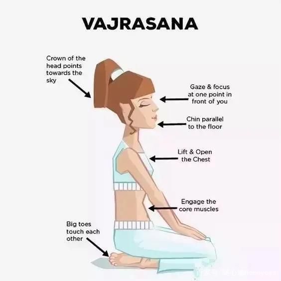 雷電坐(Vajrasans)Vajra 意思是雷電或者鉆石,Asana意思是體位或者姿勢,也叫雷電坐也叫霹靂坐,最常聽到的應該是“金剛坐”。是瑜伽體式里最能助你消化的體式~