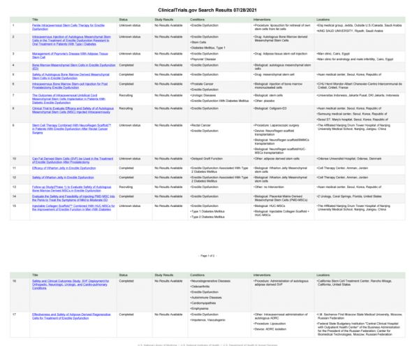 △clinicaltrials.gov顯示有17項干細胞治療ED的臨床試驗注冊