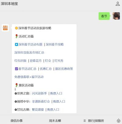 溫馨提示:微信搜索公眾號【深圳本地寶】,關(guān)注后,在對話框發(fā)送【春節(jié)】即可獲取春節(jié)活動匯總(景區(qū)+燈會+燈光秀+花市等)、新年紅包封面、10區(qū)春節(jié)活動、春節(jié)旅游好去處、景區(qū)特惠門票等