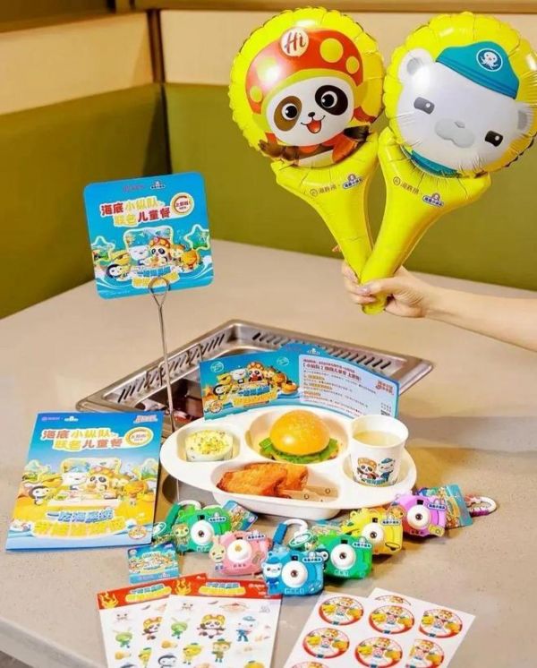 5月15日,全國(guó)1300家海底撈門(mén)店同步上線“海底小縱隊(duì)聯(lián)名套餐”,不僅包含牛肉漢堡、咸蛋黃雞翅、小蛋糕等多款產(chǎn)品,連甜品都做成了海底小縱隊(duì)成員的造型。