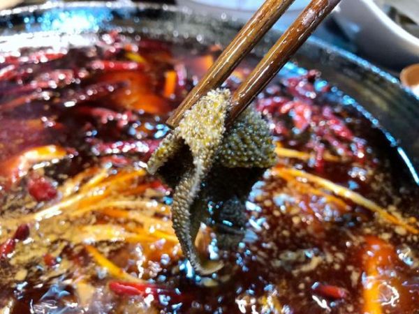 鴨腸和鵝腸都是重慶火鍋的優(yōu)質(zhì)食材。鴨腸韌性強(qiáng),入口脆爽有嚼勁,燙15秒即可。鵝腸寬度和厚度均勝于鴨腸,口感更爽脆。