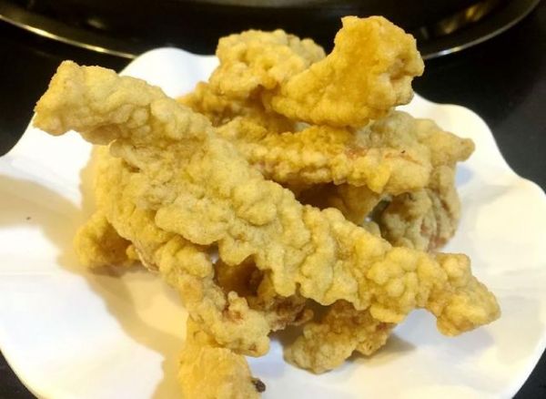 現(xiàn)炸酥肉,三線肉最佳,里脊肉也行,外酥里嫩,直接抓來吃。