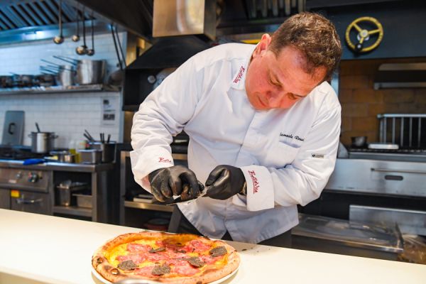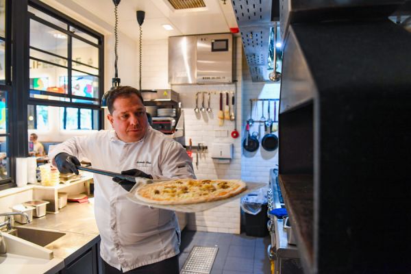 薩姆·羅西很忙。上午9點半,面試一位菲律賓應(yīng)聘者,為新店做準(zhǔn)備;10點,接受媒體采訪,其間還處理了幾個電話會議;11點,他興致高昂地擼起袖子進(jìn)后廚一展才藝,片刻之后,一個馬年限定的松露薩拉米披薩就出爐了。
