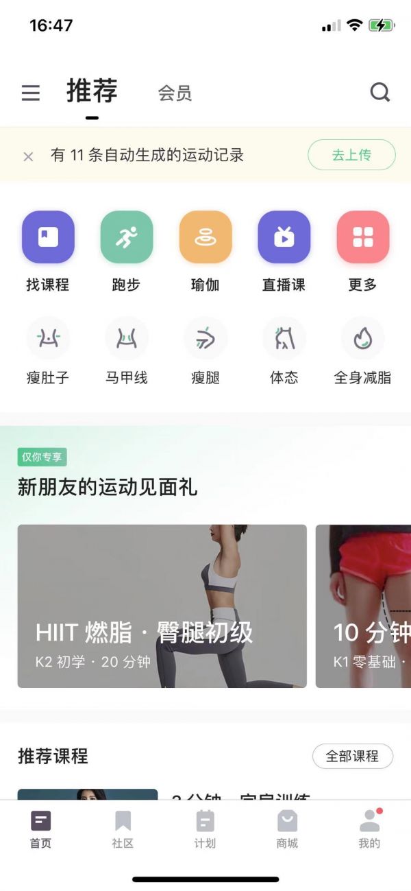 keep偏重于運(yùn)動(dòng)管理。輸入你的基礎(chǔ)信息:身高、體重、體型、生理期、過(guò)往運(yùn)動(dòng)經(jīng)歷、想改善的身體部位等,就能生成身體數(shù)據(jù)報(bào)告。