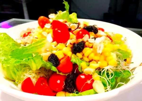 晚餐是水煮面、黃瓜和蔬菜色拉,健康又美味。